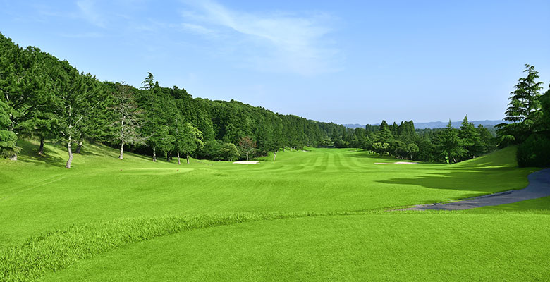 高低差が少なく、広くフラットなフェアウェイに向かって豪快なドライバーショットが可能です。