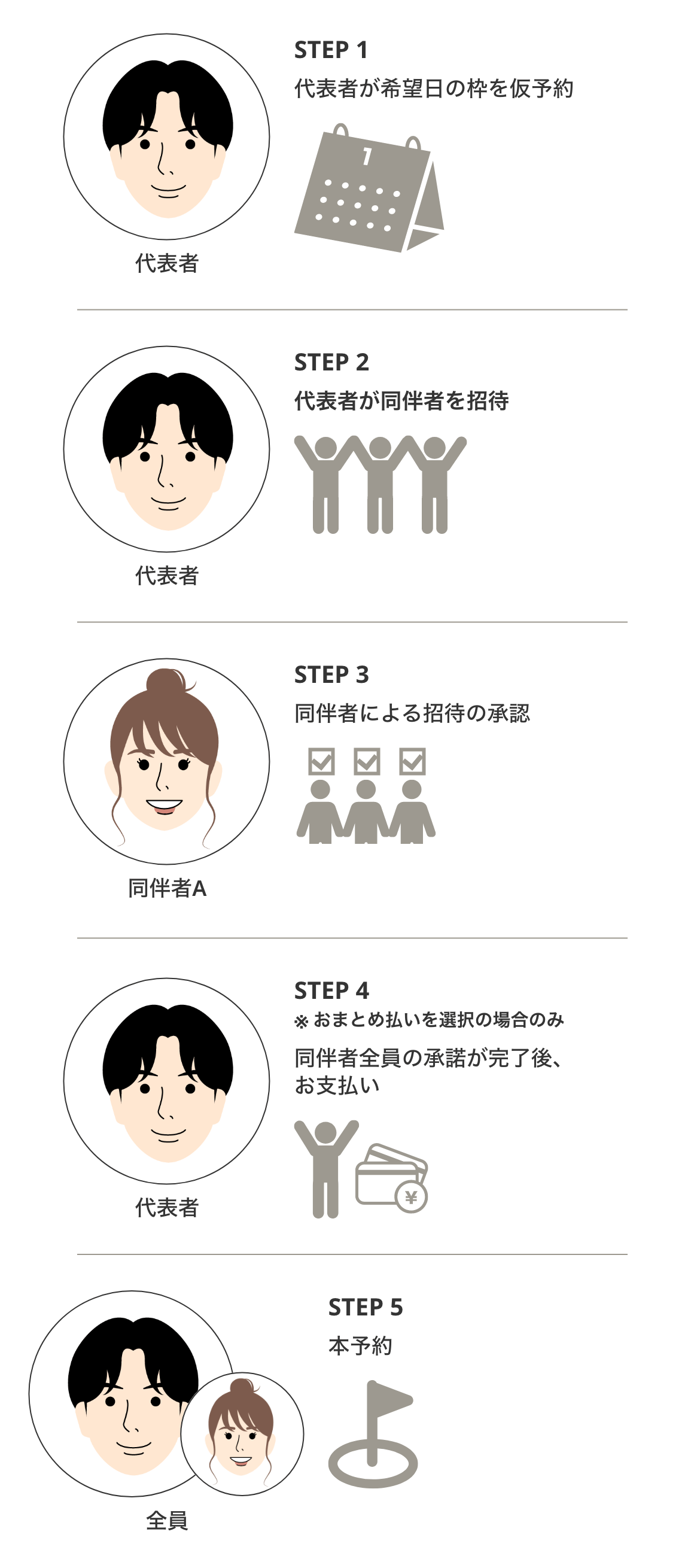 お支払いまですべてが完了すると、代表者・同伴者全員の予約詳細ページに、本予約確定のメッセージが表示されます。