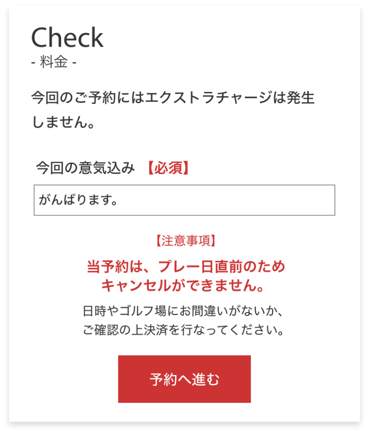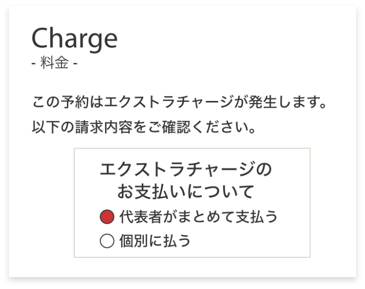 エクストラチャージ(追加費用)が発生しない場合、エクストラチャージが発生しない旨のメッセージが表示されます。