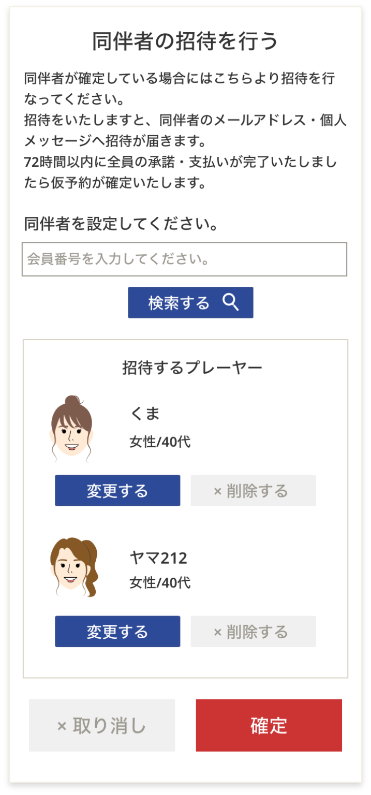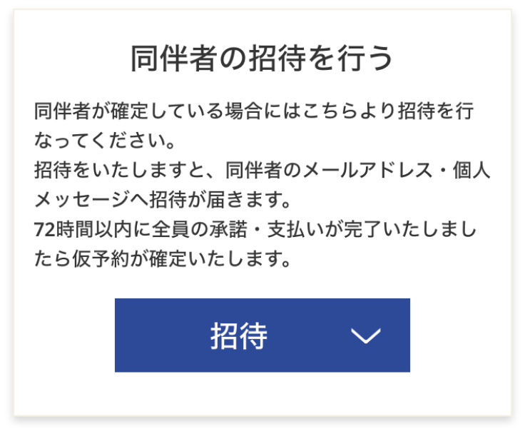 枠のみ仮予約が完了すると、予約詳細ページから同伴者の招待が可能になります。