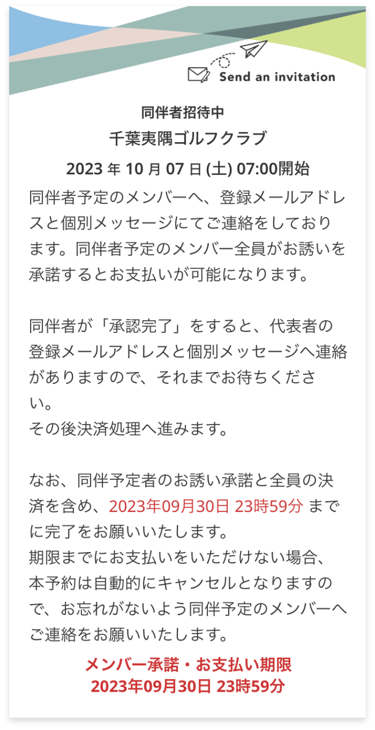 同伴者の招待を行っている間、予約詳細ページで表示されるメッセージです。