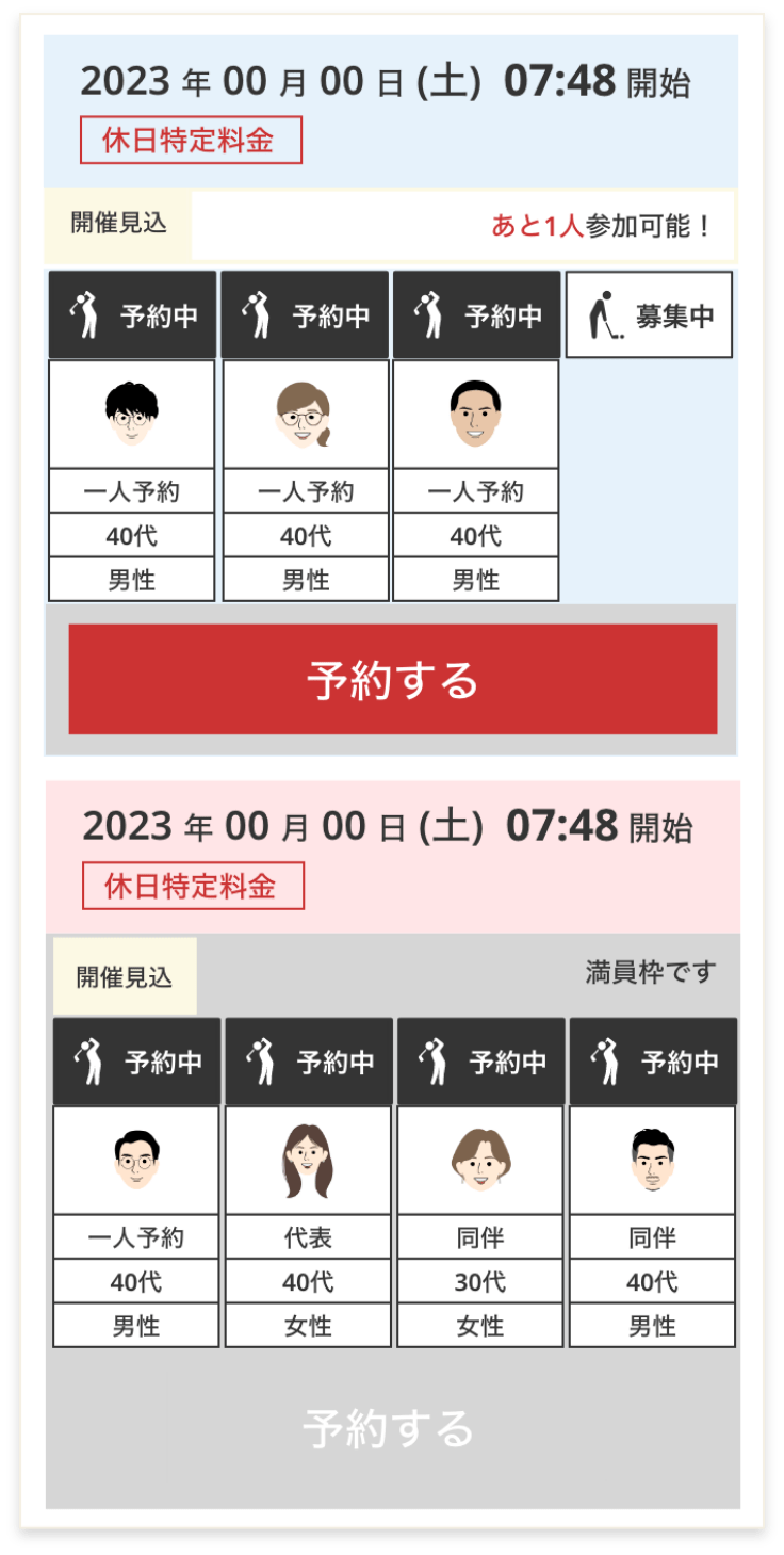 検索結果に予約可能なラウンドが表示されます。